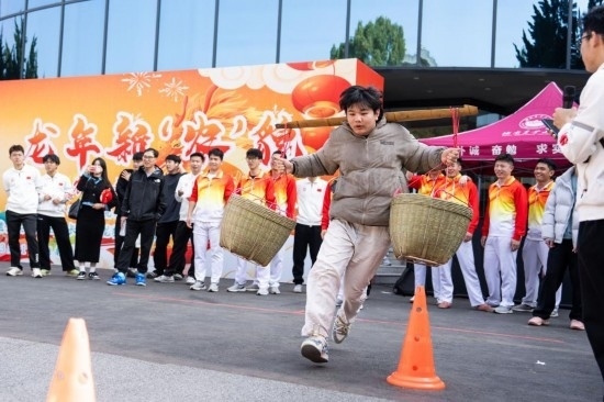 3月11日,學(xué)生在湖南農(nóng)業(yè)大學(xué)參加趣味農(nóng)耕運(yùn)動游戲。
