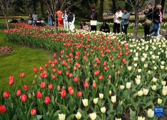 3月11日,人們在杭州太子灣公園觀賞郁金香。