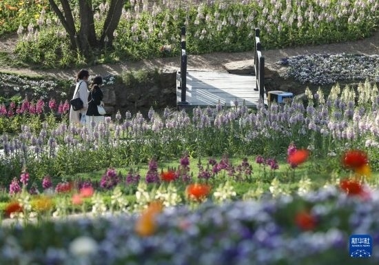 5月11日,游客在大連英歌石植物園游覽(無人機照片)。