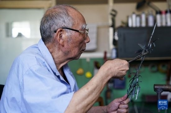 如今,湯傳松致力于蕪湖鐵畫鍛制技藝的傳承工作,他將畢生所學所悟傳授給年輕一代的鐵畫藝人,繼續(xù)用錘筆鐵墨繪就水墨丹青。