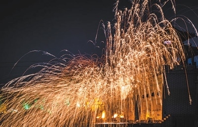 碎炭、起火、熔鐵、揚(yáng)水、打花……夜晚,在河南開封清明上河園景區(qū),一場流光溢彩的“打鐵花”民俗文化表演正在上演(見圖,受訪者供圖)。隨著1600攝氏度的鐵水在夜空中幻化成漫天的“星光”,絢爛、璀璨,瞬間驚艷全場,現(xiàn)場觀眾由衷發(fā)出陣陣驚嘆。而這一巧奪天工的“重金屬藝術(shù)”正是開封打鐵花第二十二代傳承人劉小松及其團(tuán)隊(duì)的作品。