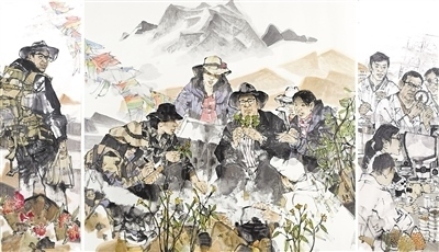 在專(zhuān)題展覽中,一些美術(shù)工作者自發(fā)圍繞共產(chǎn)黨員形象創(chuàng)作的作品,憑借獨(dú)特的構(gòu)思布局、藝術(shù)手法等令人矚目。像“第七屆全國(guó)畫(huà)院美術(shù)作品展”上,陳勇中國(guó)畫(huà)《黨員突擊隊(duì)·抗洪戰(zhàn)士》以組畫(huà)的形式、連環(huán)畫(huà)的敘事邏輯,展現(xiàn)了黨員突擊隊(duì)不畏危難、沖鋒在前的英雄氣概?!皶r(shí)代之光——第五屆中國(guó)油畫(huà)展”上,劉文偉油畫(huà)《勞動(dòng)者·記港珠澳大橋建設(shè)》則采用近距離視角,以粗糲大氣的筆觸,描繪大橋建設(shè)者中的黨員肖像。這些新作反映出美術(shù)工作者在創(chuàng)作中對(duì)共產(chǎn)黨員群體的自覺(jué)關(guān)注,以及力求突破“模式化”的創(chuàng)作實(shí)踐。