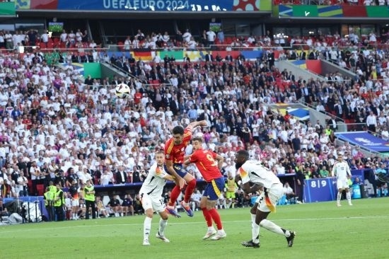 久攻之下,德國隊(duì)終于在第89分鐘扳平比分,米特爾施泰特左路傳中,基米希頭球回?cái)[,維爾茨抽射入網(wǎng)。兩隊(duì)在常規(guī)時(shí)間1:1戰(zhàn)平,比賽進(jìn)入加時(shí)賽。第106分鐘,德國隊(duì)穆夏拉射門擊中西班牙隊(duì)庫庫雷利亞手臂,后者當(dāng)時(shí)在本方禁區(qū)內(nèi)防守,但主裁判并沒有判罰點(diǎn)球,VAR(視頻助理裁判)也沒有介入。