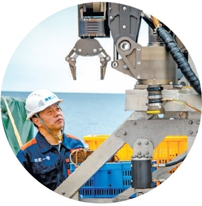 宋建忠查看載人潛水器機(jī)械手。李 濱攝