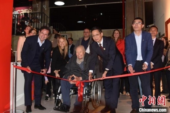 當(dāng)?shù)貢r間8月12日,巴西圣保羅州坎皮納斯市,“中國藝術(shù)五千年 塞奎拉·萊特收藏”啟幕。圖為收藏家塞奎拉·萊特(前左二)在開幕式上剪彩。中新社記者 林春茵 攝