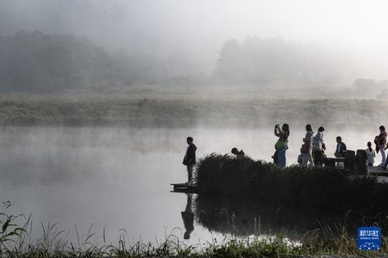 在“華中屋脊”湖北神農(nóng)架深處有一片高山濕地,一條小溪串起9個(gè)湖泊,故名“大九湖”。天剛破曉,大九湖上晨霧縹緲,風(fēng)光秀麗,游人仿佛置身于夢幻的世界。