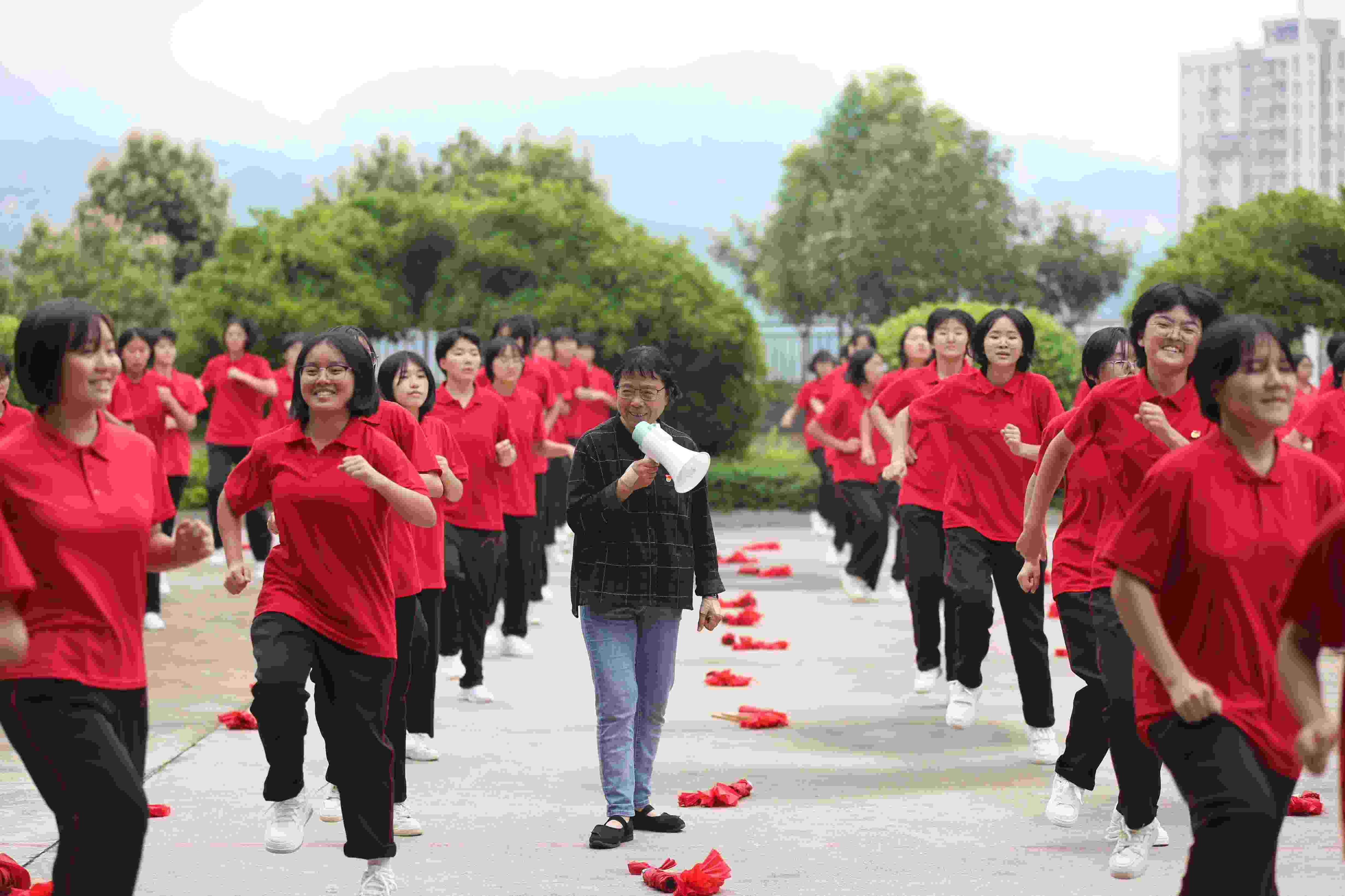 我也一直在思考如何讓舞蹈藝術(shù)抵達更多的人。舞蹈教學(xué)的傳統(tǒng)一直是口傳心授,師父帶徒弟手把手言傳身教,最多同時教十幾個學(xué)生。隨著科技進步,互聯(lián)網(wǎng)的發(fā)展讓藝術(shù)有了“亮相”的新舞臺。于是,我在網(wǎng)上開設(shè)舞蹈教學(xué)課堂,把秧歌舞重新編排成簡單易學(xué)的廣場舞,無償教給大家。有一次我去基層演出,看到當?shù)赜袀€100多人的隊伍跳我編排的秧歌舞。我知道10人、20人的舞蹈是什么樣的,但當看到100位身著統(tǒng)一服裝的舞者,100張蓬勃向上的笑臉,100條火紅的綢帶拋向天空時,那種震撼,那種感染力,讓我忍不住加入其中,和大家攜手共舞!