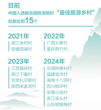 北京時間11月15日,在哥倫比亞卡塔赫納舉行的聯(lián)合國旅游組織執(zhí)行委員會第122次會議上,公布了2024年“最佳旅游鄉(xiāng)村”名單。我國申報的云南阿者科村、福建官洋村、湖南十八洞村、四川桃坪村、安徽小崗村、浙江溪頭村、山東煙墩角村7個鄉(xiāng)村入選,是本屆入選鄉(xiāng)村數(shù)量最多的國家。至此,我國的“最佳旅游鄉(xiāng)村”總數(shù)達到15個,居世界第一。