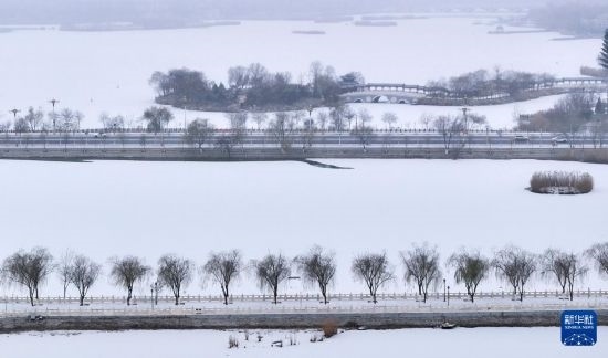 當(dāng)日,寧夏銀川迎來降雪天氣,雪后的湖泊、濕地、公園等景觀被白雪覆蓋,宛如童話世界。