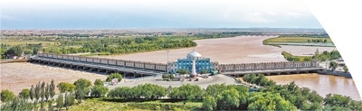 登上三盛公水利樞紐觀景平臺(tái),眼前豁然開(kāi)朗。黃河宛如一條巨龍,自天際蜿蜒而來(lái),在攔河閘壩的疏導(dǎo)和調(diào)控下,水流變得平緩有序。在這里,黃河被一分為二,一條仍沿主河道逶迤東去,一條則被引入由人工開(kāi)鑿的總干渠。