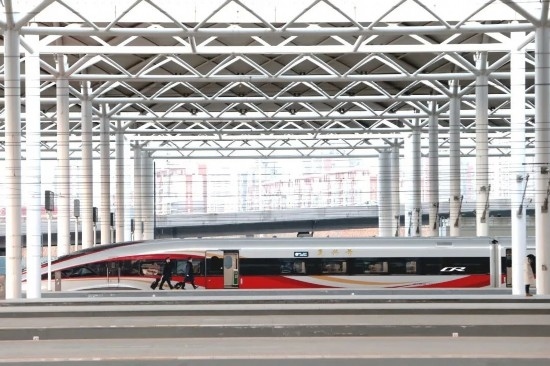 除夕當(dāng)天,一列復(fù)興號(hào)智能動(dòng)車組蓄勢待發(fā)。