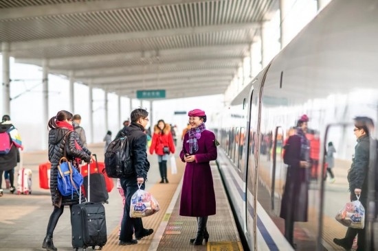 2018年春運(yùn),完成值乘任務(wù)的復(fù)興號(hào)列車長開心退乘。