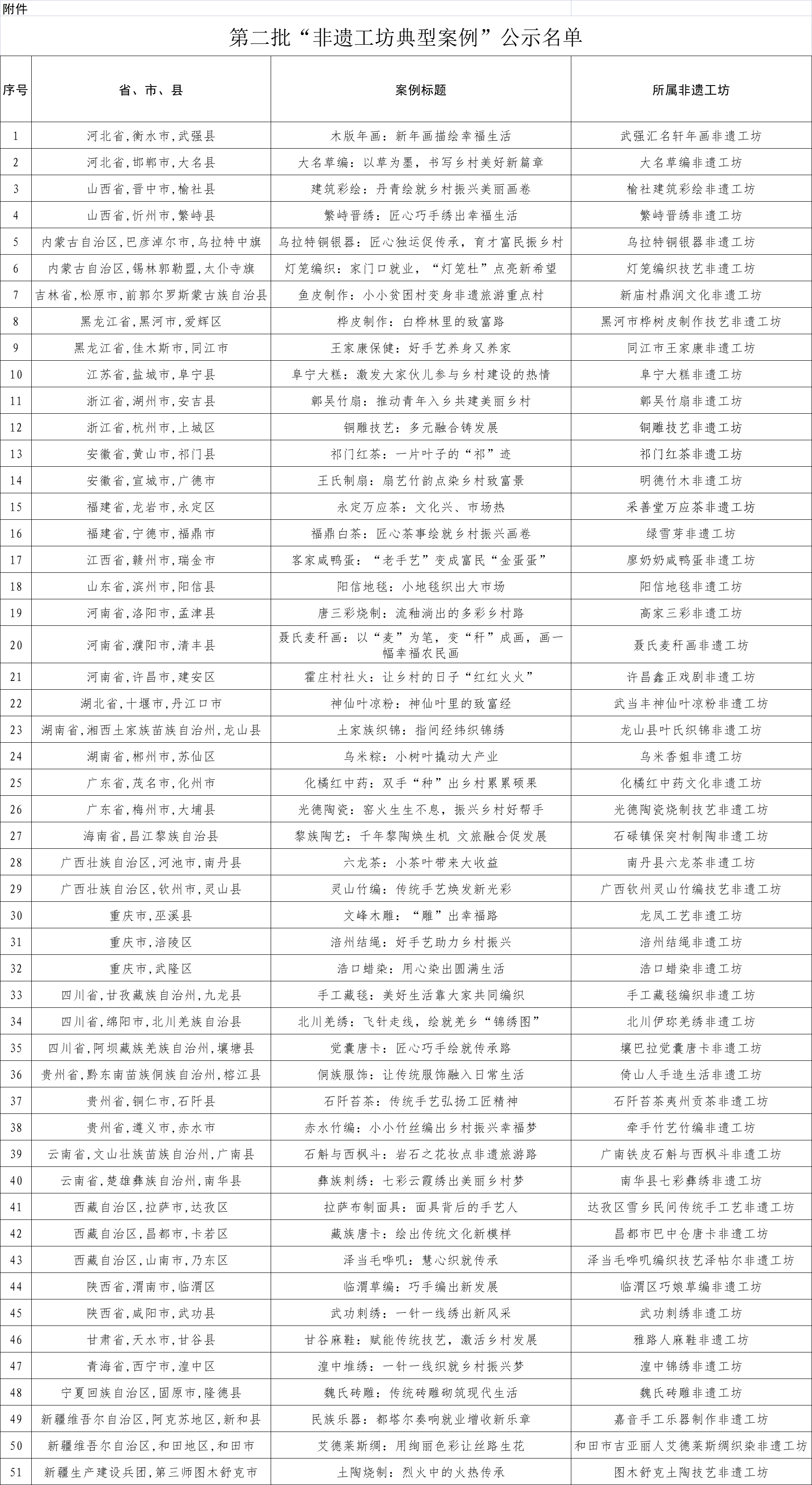 人民網(wǎng)北京3月19日電 (記者楊虞波羅)根據(jù)《文化和旅游部辦公廳 人力資源社會保障部辦公廳 農(nóng)業(yè)農(nóng)村部辦公廳關于推薦第二批“非遺工坊典型案例”的通知》,經(jīng)各省推薦和專家評議,第二批“非遺工坊典型案例”推薦和遴選工作于日前結(jié)束?,F(xiàn)將推薦名單進行公示。