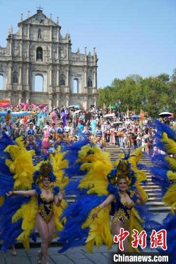 3月23日,“2025澳門國際幻彩大巡游”啟動,近1800人的巡游團(tuán)隊帶著精彩表演從大三巴牌坊前出發(fā),穿越澳門歷史城區(qū)的舊街老巷,為沿途市民與游客呈獻(xiàn)精彩的文化交流盛宴。 中新社記者 鄭嘉偉 攝