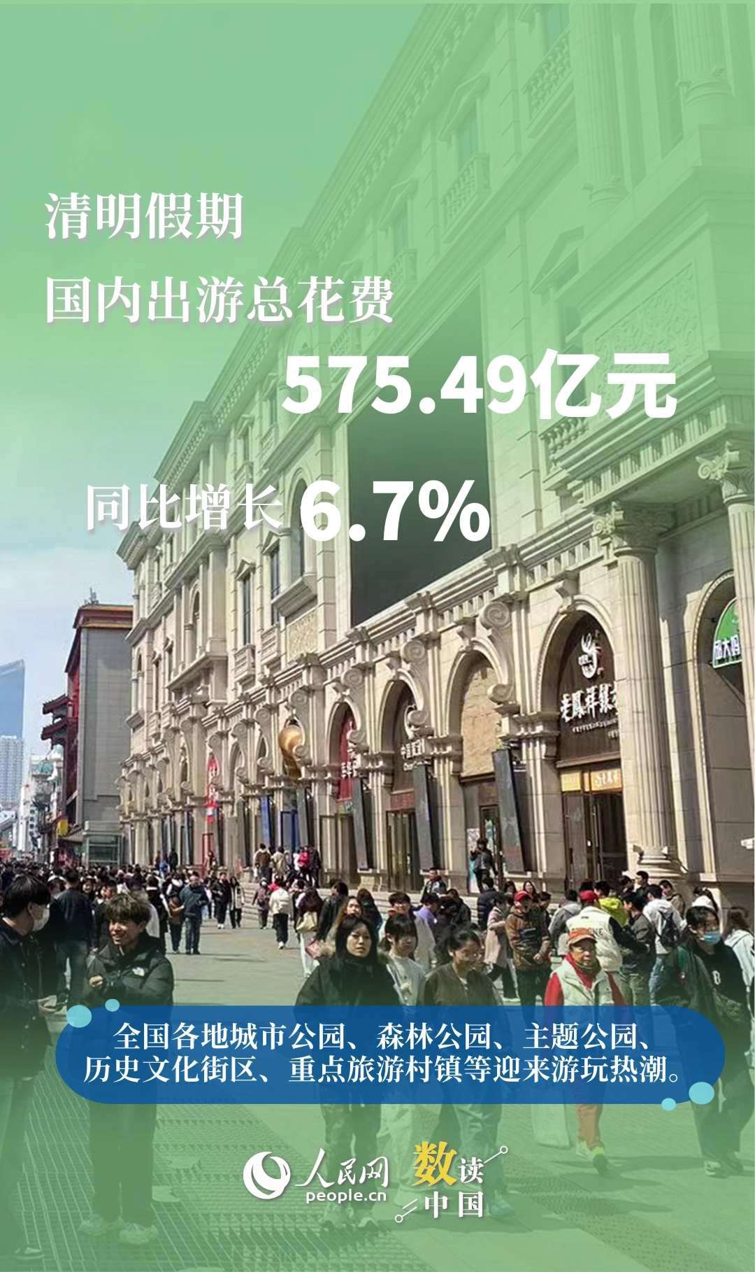 經(jīng)文化和旅游部數(shù)據(jù)中心測(cè)算,清明節(jié)假期3天,國內(nèi)出游總花費(fèi)575.49億元,同比增長6.7%。