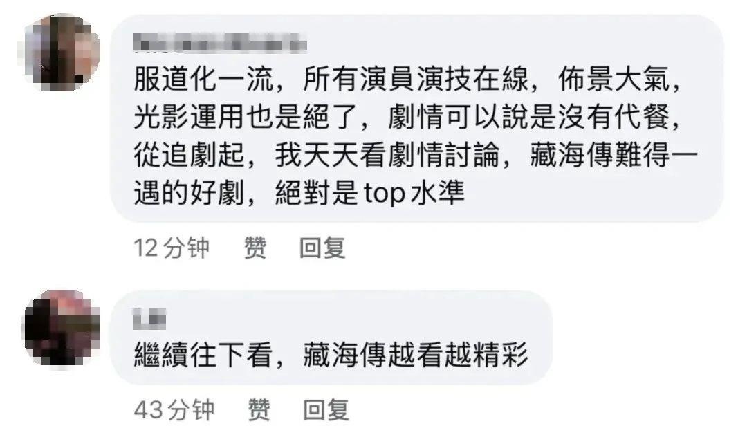 “畫面、場景、演技、情節(jié),各方面都近乎完美,相當(dāng)優(yōu)良的制作”,“服化道一流,演員演技在線,布景大氣”,“感受到了老祖宗的審美”,“連看兩遍,因?yàn)楹芏嗉?xì)節(jié)值得細(xì)品”……一些臺灣觀眾在“看臺?!焙M馄脚_留言大贊劇集,足見這部叫好叫座的總臺大劇深深吸引了臺灣觀眾。