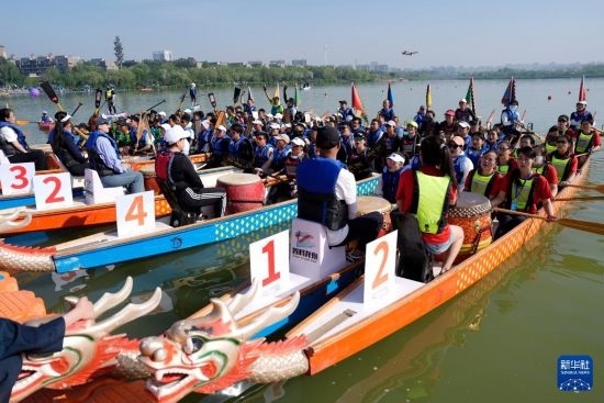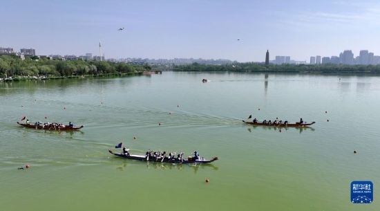 當(dāng)日,2025年“民族團(tuán)結(jié)杯”寧夏端午龍舟邀請賽在銀川市海寶公園舉行。來自寧夏全區(qū)的19支代表隊參加比賽,用龍舟賽的方式共度端午假期。