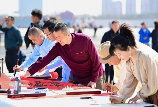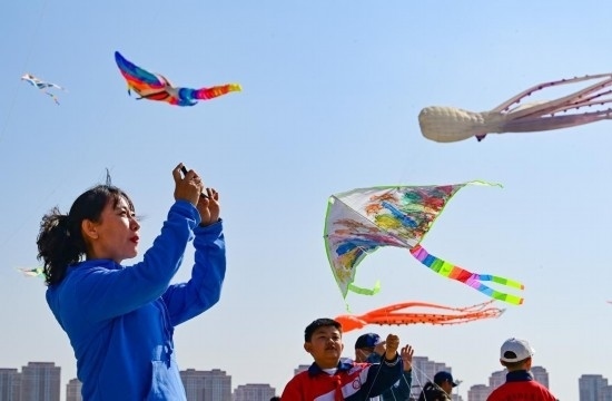 當日,內(nèi)蒙古鄂爾多斯市康巴什區(qū)在亞洲雕塑藝術主題公園舉辦“紙鳶飛舞頌春色”系列活動,風箏愛好者和文學書法愛好者在活動中彩繪風箏,詠詩賦詞,放飛紙鳶,享受春光。