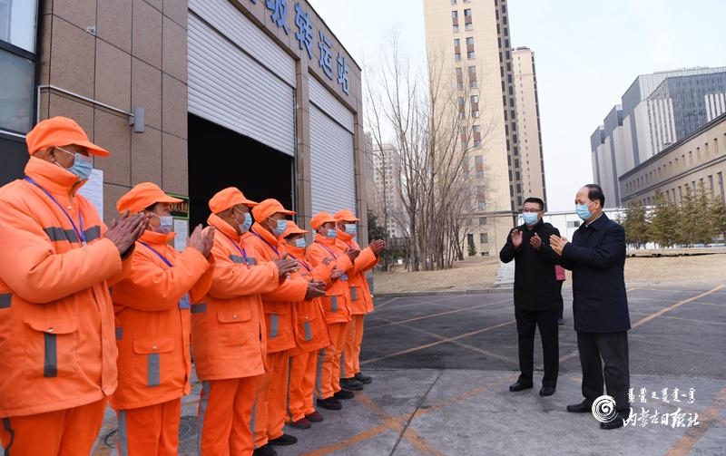2月11日,自治區(qū)黨委書(shū)記、人大常委會(huì)主任石泰峰慰問(wèn)呼和浩特市賽罕區(qū)環(huán)衛(wèi)局萬(wàn)正生活垃圾轉(zhuǎn)運(yùn)站一線環(huán)衛(wèi)工人,向他們致以新春的祝福。