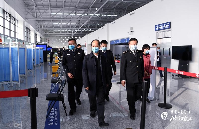 2月11日,自治區(qū)黨委書(shū)記、人大常委會(huì)主任石泰峰來(lái)到呼和浩特白塔機(jī)場(chǎng)國(guó)際航站樓,檢查首都機(jī)場(chǎng)分流國(guó)際航班熔斷后航班恢復(fù)的疫情防控準(zhǔn)備工作。 內(nèi)蒙古日?qǐng)?bào)社融媒體記者 袁永紅 攝