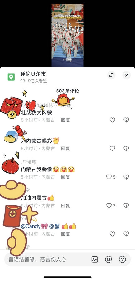 網(wǎng)友紛紛表示:“為內(nèi)蒙古喝彩”“內(nèi)蒙古我驕傲”“這個地方挺漂亮,祝運動會圓滿成功”等。