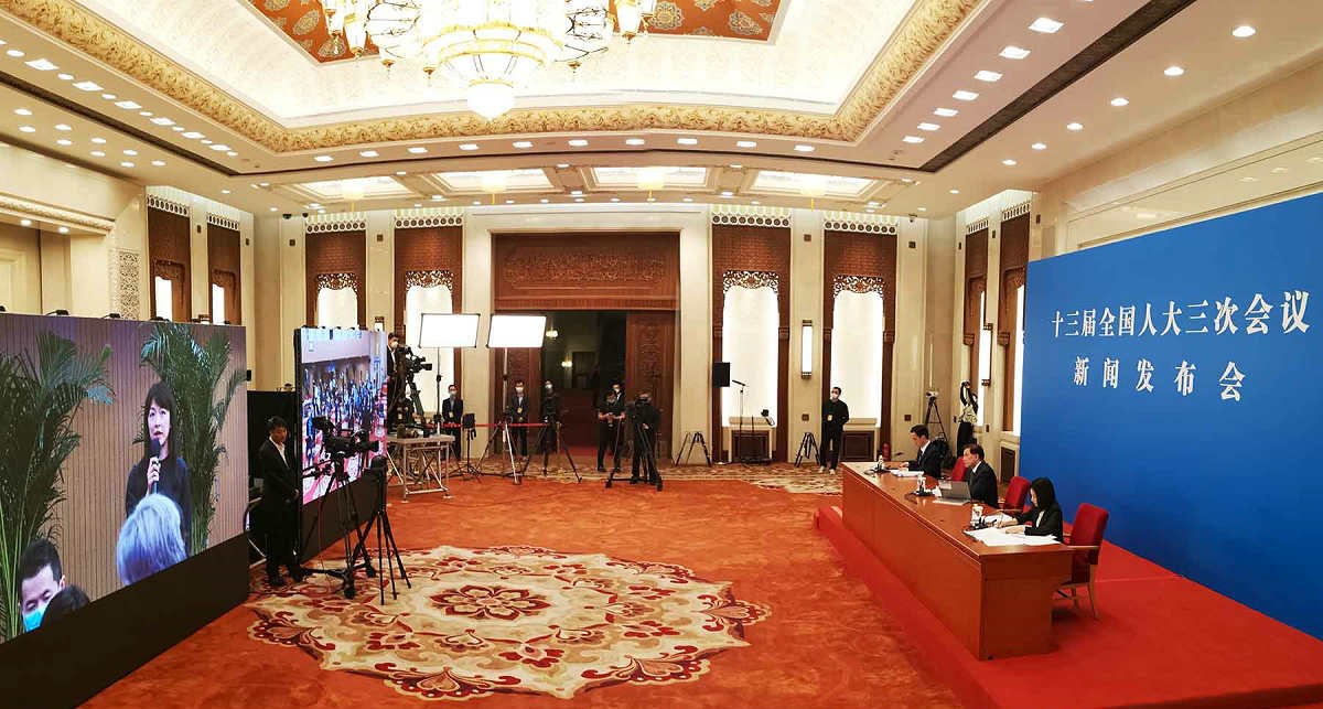 5月21日,十三屆全國(guó)人大三次會(huì)議在人民大會(huì)堂新聞發(fā)布廳舉行新聞發(fā)布會(huì),由大會(huì)發(fā)言人就大會(huì)議程和人大工作相關(guān)問(wèn)題回答中外記者提問(wèn)。