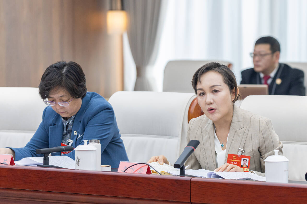 3月9日,全國人大代表孟達英(左)在審議“兩高”工作報告時建議,最高人民法院應出臺有關破壞濕地行為定罪量刑標準的有關法律配套司法解釋。草原云記者 馬建兵 攝