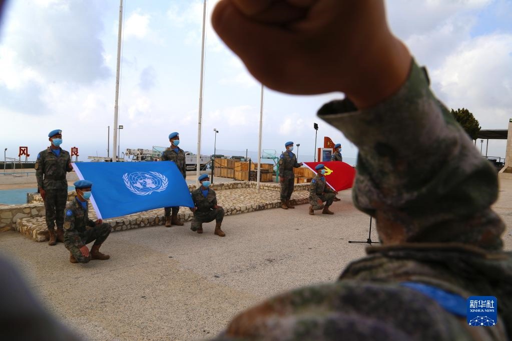 “我宣誓:忠于黨,忠于社會主義,忠于祖國,忠于人民……揚藍盔精神,展大國形象,為祖國爭光,為軍旗添彩?!敝袊伯a(chǎn)主義青年團成立100周年之際,在黎巴嫩南部提爾市沙馬村的中國維和營區(qū),中國第20批赴黎巴嫩維和建筑工兵分隊的官兵們頭戴貝雷帽,身穿配有五星紅旗臂章的星空迷彩服,擺成數(shù)字“100”的隊形,面向國旗和聯(lián)合國旗莊嚴宣誓。
