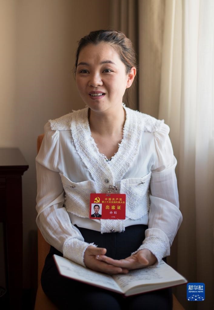 10月18日,孫娟代表接受記者采訪。新華社記者 張豪夫 攝