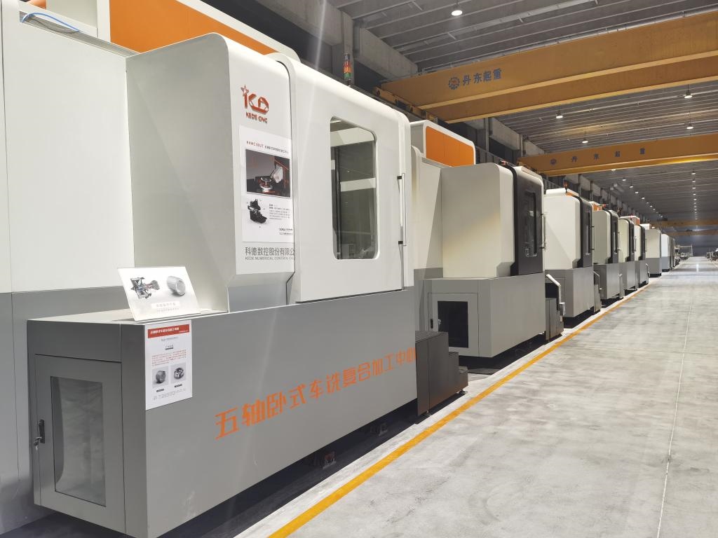 大連光洋科技集團(tuán)恒溫恒濕地藏式生產(chǎn)車間里的五軸臥式車銑復(fù)合加工中心。(新華社記者鄒明仲攝)