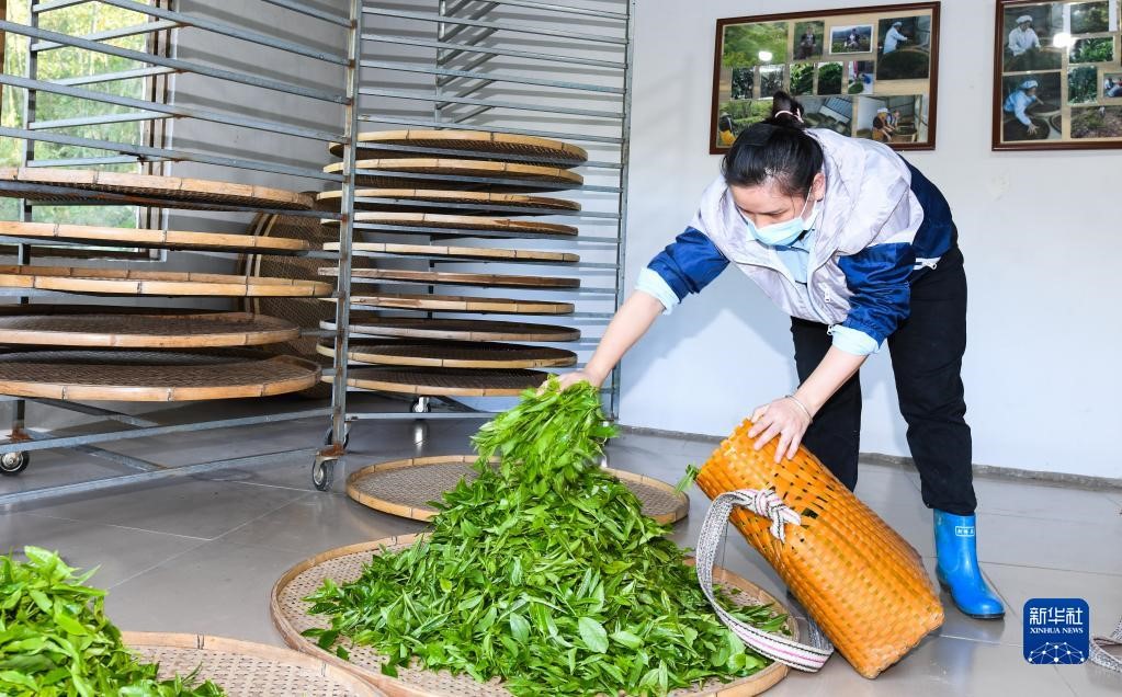 4月10日,在海南省五指山市水滿(mǎn)鄉(xiāng)毛納村,茶農(nóng)在手工茶坊內(nèi)工作。新華社記者 楊冠宇 攝