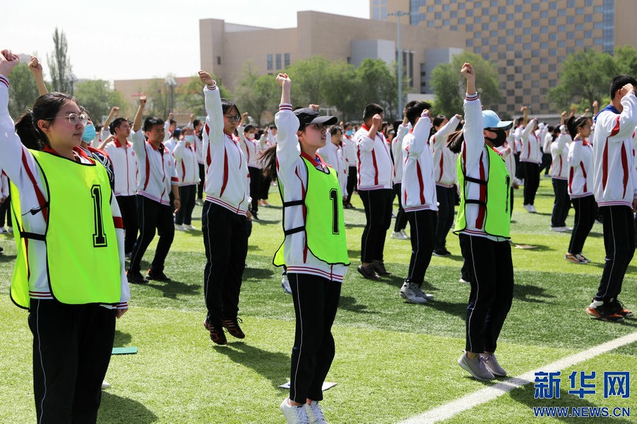 在緊張的備考狀態(tài)下,呼和浩特市第二中學加強對學生身體素質訓練,健康備考。新華網 李倩攝 -
