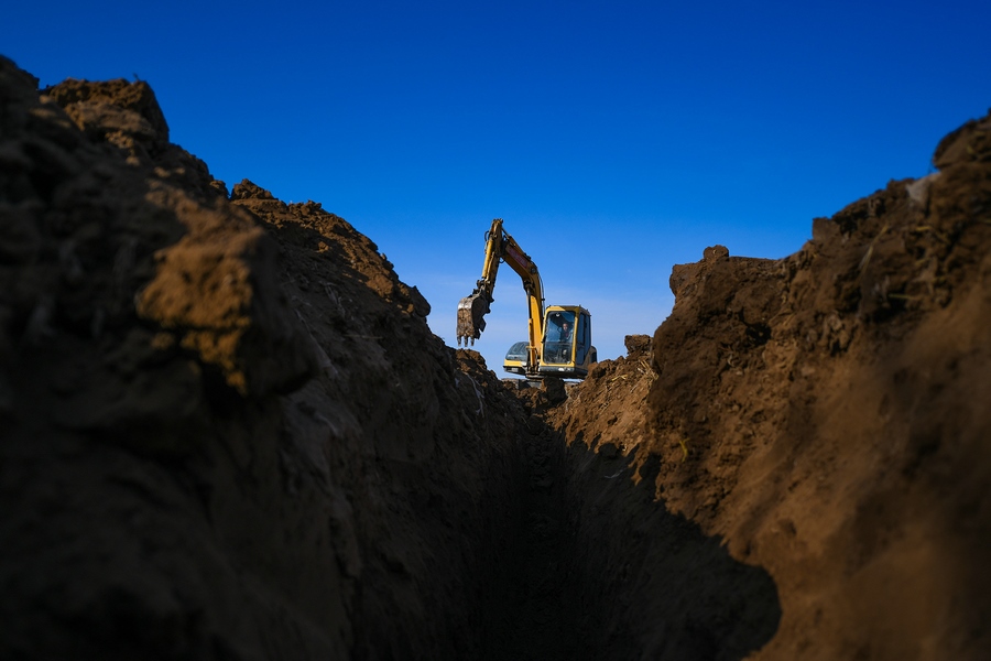 連日來,隨著天氣轉(zhuǎn)暖,呼和浩特市土默特左旗各鄉(xiāng)鎮(zhèn)、各部門迅速掀起春耕備耕熱潮,紛紛搶抓農(nóng)時(shí),全力投入春耕備耕生產(chǎn)中,為農(nóng)業(yè)增效、農(nóng)民增收打下了堅(jiān)實(shí)的基礎(chǔ)。圖為高標(biāo)準(zhǔn)農(nóng)田建設(shè)施工現(xiàn)場。(攝影:楊鑫) -
